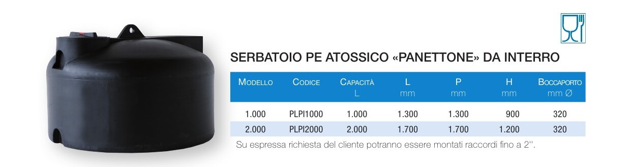 • Polietilene lineare atossico a media/alta densità idoneo per acqua potabile a norma del D.M. n. 174 del 06.04.04.