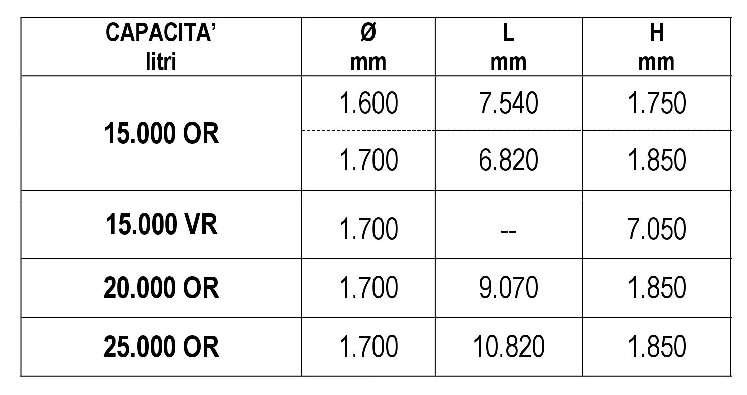 Fino alla capacità di 25.000 Litri nella versione orizzontale e 15.000 litri in verticale