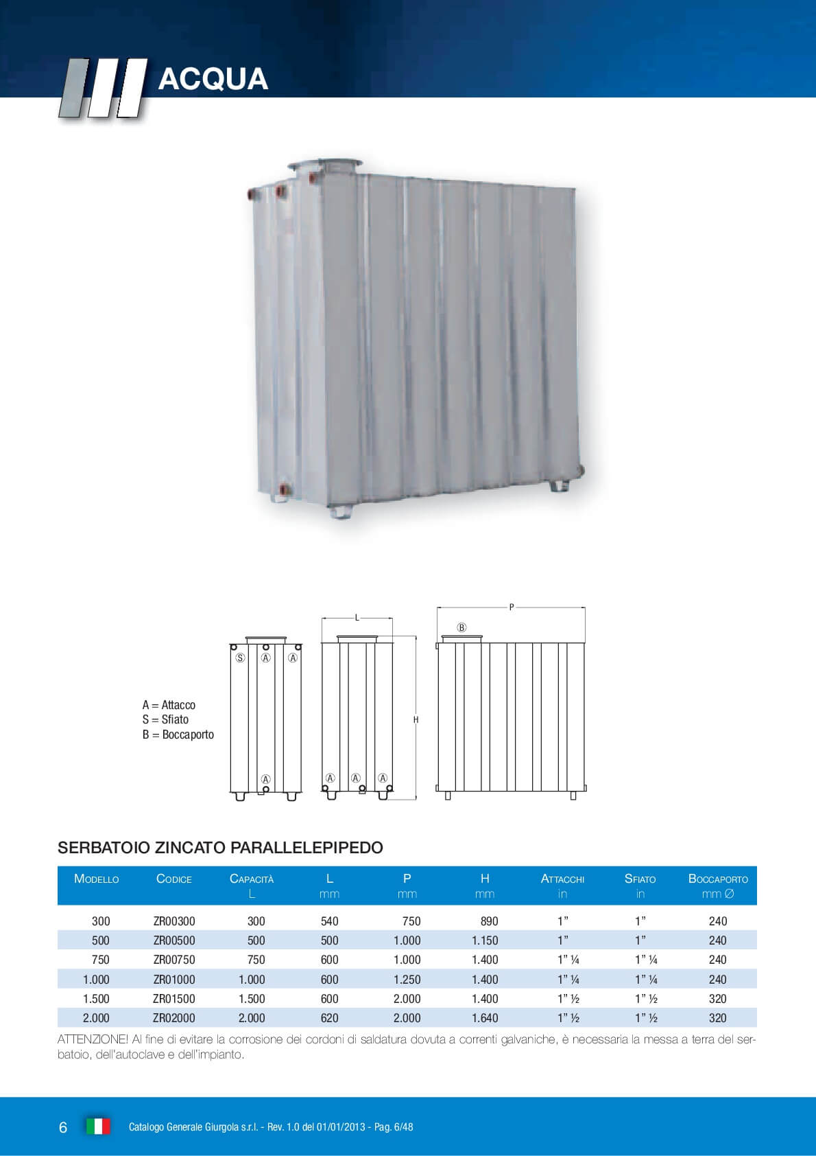 • I Serbatoi Zincati prima raccolta possono essere collegati in presa diretta alla fonte di approvvigionamento. La quantità d’acqua così immagazzinata potrà soddisfare esigenze improvvise e simultanee.